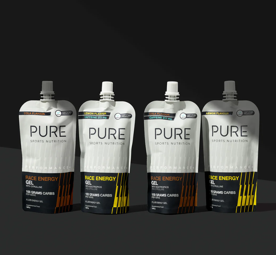 PURE Performance + Race Energy Gel 100 g Carb Pouch delivers the same scientifically balanced blend of carbohydrates, electrolytes and performance ingredients found in our Race Energy Gels, just in a larger, flexible format with resealable lid, designed for long sessions and extended racing.