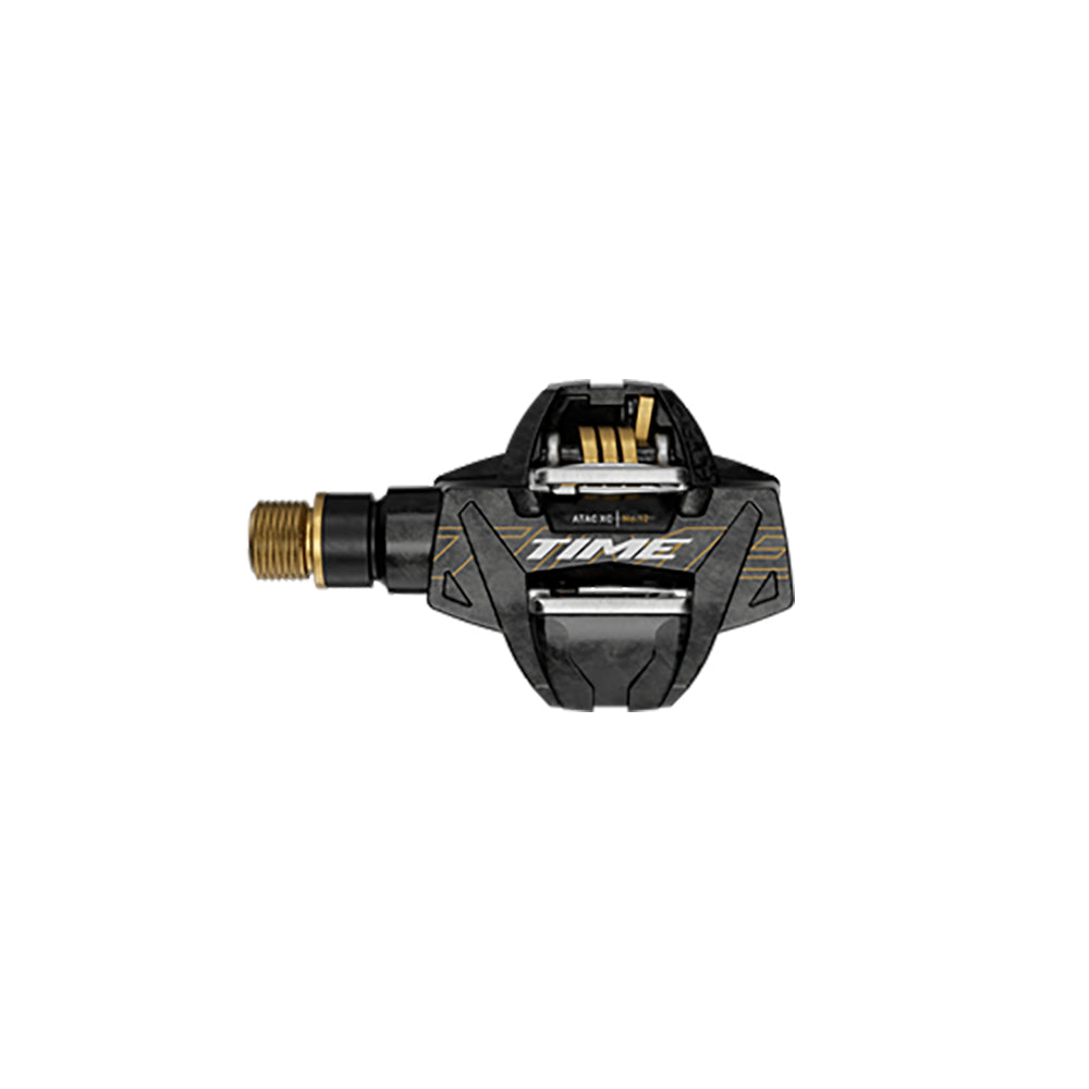 TIME ATAC XC 10 PEDAL The ATAC XC 12 is our lightest off-road pedal, purpose-built for quick windup and trail speed. TIME’s premier XC pedal is also designed for your comfort thanks to an ergonomic design. It all starts with simple clip-in thanks to a wide-angle of positive cleat engagement. Once you’re in the clipped in, the features of ATAC XC 12 really kick in: Freedom of movement lateral and angular for reduced injuries and muscle fatigue. The pedal’s self-cleaning design clears mud and debris each time you step in. Light and strong with a titanium axle and carbon body, ATAC XC 12 offers easy and consistent engagement with tension adjustment to meet your pedal preference and needs. This pedal is ideal for gravel and cyclocross as well.