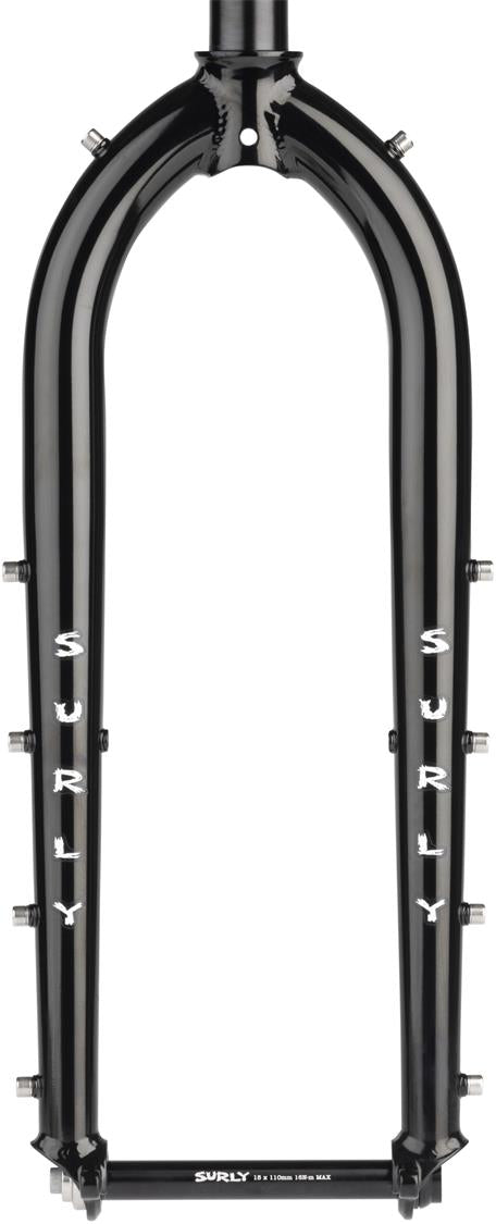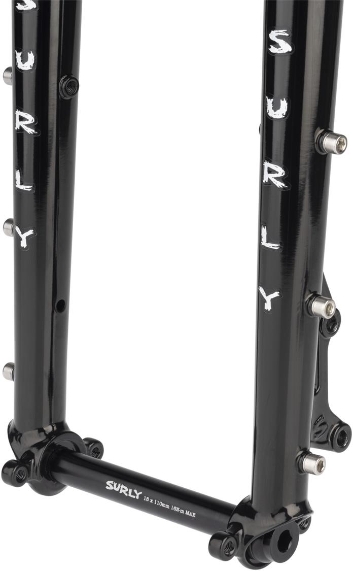 SURLY DINNER FORK The Dinner Fork is non-suspension corrected and accommodates 26”, 27.5”, and 29” wheel sizes. If you want to run fenders alongside an 8 or 24-Pack style rack, this fork can do that. Hell, it relishes it. Run it on your current Surly for a thought-provoking new experience, or throw it on a different rig to unlock some off-road capabilities. |